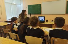 3 "Г" сыйныфы укучылары яңа SMART такта белән эшләү тәртибен өйрәнәләр.