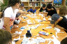 Сегодня в лагере ребята занимались художественным трудом. Они делали панно из пластилина и семян растений. Для украшения его использовали разный материал: искусственные цветы и листья, бусины, стразы, бантики. Во второй половине дня с ребятами проведено мероприятие "Турнир знатоков природы". В программе: блиц-викторина, конкурс загадок, коллективный рисунок животного, конкурс "Изобрази животное".