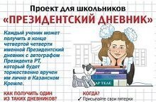 Каждый ученик сможет получить в конце четвертой четверти именной Президентский дневник с автографом Президента Республики Татарстан Рустама Минниханова, который будет торжественно вручён им лично в Казанском Кремле.