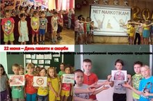 Сегодня в лагере "День памяти и скорби". В актовом зале ребята подготовили театрализованную игровую программу «На войне как на войне». Каждый отряд участвовал в конкурсе военных песен и стихов «Нас война отметила меткой особою…» . Объявили минуту молчания. У всех были серьёзные лица и, каждый понял важность и торжественность этого дня. После обеда организовали конкурс рисунков на асфальте « Никто не забыт, ничто не забыто». В рамках антинаркотической акции организовали мероприятие «Жизнь без наркотиков», приуроченной к 26 июня – Международному дню борьбы со злоупотреблением наркотическими средствами. Ребята послушали рассказ о вредности наркотических средств и смотрели видео. В отрядах организовали выставки «Мы за здоровый образ жизни!», «Наркотикам нет!».