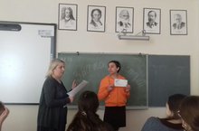 В рамках недели русского языка и литературы в школьной библиотеке состоялась встреча учащихся 6В и 7А классов (учитель русского языка и литературы Скокова Л.Н.) с местным автором Курнавенковой Н.Ф. Наталья Фёдоровна прочитала свои стихи и рассказы, которые учащиеся слушали в большим вниманием.