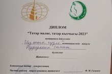 1 нче сыйныф укучысы Нуруллин А. (укытучысы Сөнгатуллина Н.М.) "Татар малае-2023" бәйгесеннең икенче этабында катнашып, " Иң оста сүзле" номинациясендә җиңү яулады. Афәрин!!!