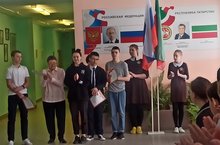 Еженедельно по понедельникам в школе проходит общешкольная линейка с поднятием государственных флагов РФ и РТ. Сегодня на линейке, директор школы Бакалдина Л.В. вручила почетные грамоты отличившимся ученикам: Ефимовой А.- 10 класс, Березину Б. - 8 В класс, Фатхутдинову И - 9 А класс.
