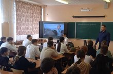 Сегодня, 18 февраля, в рамках месячника гражданско-патриотического воспитания, посвященного Дню защитника Отечества для учащихся 8-11 классов нашей школы состоялась встреча с руководителем поискового отряда "Выстрел" Юдиным Д.