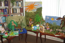 В школьной библиотеке открылась выставка творческих работ учащихся и педагогов школы по произведениям Г. Тукая, посвящённая 130-летию со дня рождения великого поэта. Здесь вы можете увидеть забавного Шурале, очаровательную Водяную, смекалистого Былтыра и многих других героев ТУКАЯ.