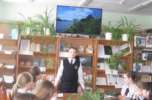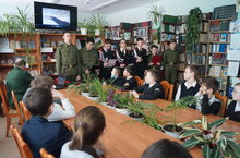 В школьной библиотеке состоялась встреча учащихся 6В и 7А классов с участником боевых действий в Афганистане Ильиным Виктором Фёдоровичем и кадетами КШИ им. Героя Советского союза Кузьмина С.Е. Кадеты представили собравшимся литературно-музыкальную композицию "Есть такая профессия - Родину защищать", а Ильин В.Ф. рассказал о своём боевом пути.