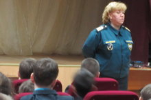 Перед учащимися начальных классов выступила сотрудник МЧС Лазарева. Она рассказала ученикам о правилах безопасного поведения на льду, научила определять опасные места, которые следует обходить. Учащиеся посмотрели и обсудили учебный фильм об оказании помощи провалившемуся под лед человеку.
