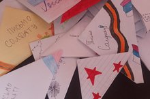 Письма солдатам. С самого начала СВО учащиеся нашей школы поддерживают наших солдат и офицеров. Эта традиция берет свое начало еще с времен Великой Отечественной войны, когда письмо было радостной весточкой для солдата, придавало ему сил.Поддержка для участников СВО, находящихся вдали от дома, поосто необходима, письма станут для солдат доброй весточкой и благодарностью за мирное небо, которое они защищают. Учащиеся МБОУ СОШ5 присоединились к Всероссийской акции "Письмо солдату".Ребята в своих письмах выразили слова благодарности всем тем, кто сейчас исполняет свой воинский долг, за чистое, мирное небо, высказали пожелания успешного выполнения боевых задач, и возвращения солдат домой живыми и здоровыми. Свои письма ребята украсили рисунками, георгиевскими лентами и оформили их в виде писем- треугольников