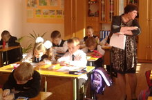 Педагог-психолог школы, Блинова З.М., проводит стартовую диагностику в 1-х классах, с целью выявления уровння готовности первоклассников к обучению в общеобразовательных учреждениях. Учащиеся выполняют тестовые задания с интерсом и старанием.
