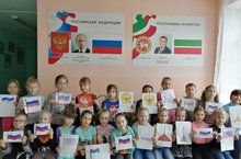 Оздоровительный лагерь "Юные таланты" работает четвертый день. Сегодня День Конституции Республики Татарстан. 100 летие ТАССР. Познавательная беседа «Что?Где?Когда?» посвященная истории Татарстана, 100 летию ТАССР. Конкурс чтецов на лучшее чтение стихов о Татарстане «Мой край родной». Флэшмоб «Я люблю Татарстан!»
