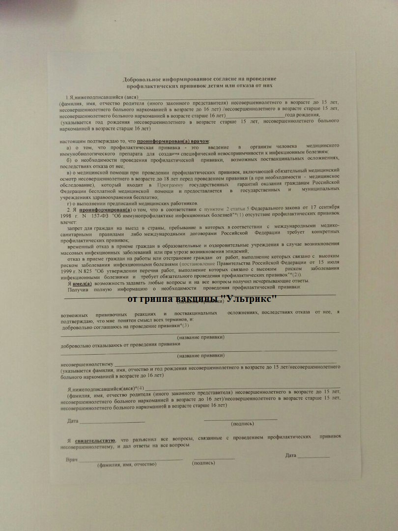 Необходимо на родительских собраниях проработать вопрос о соглашении на проведение ребёнку медицинских вмешательств.