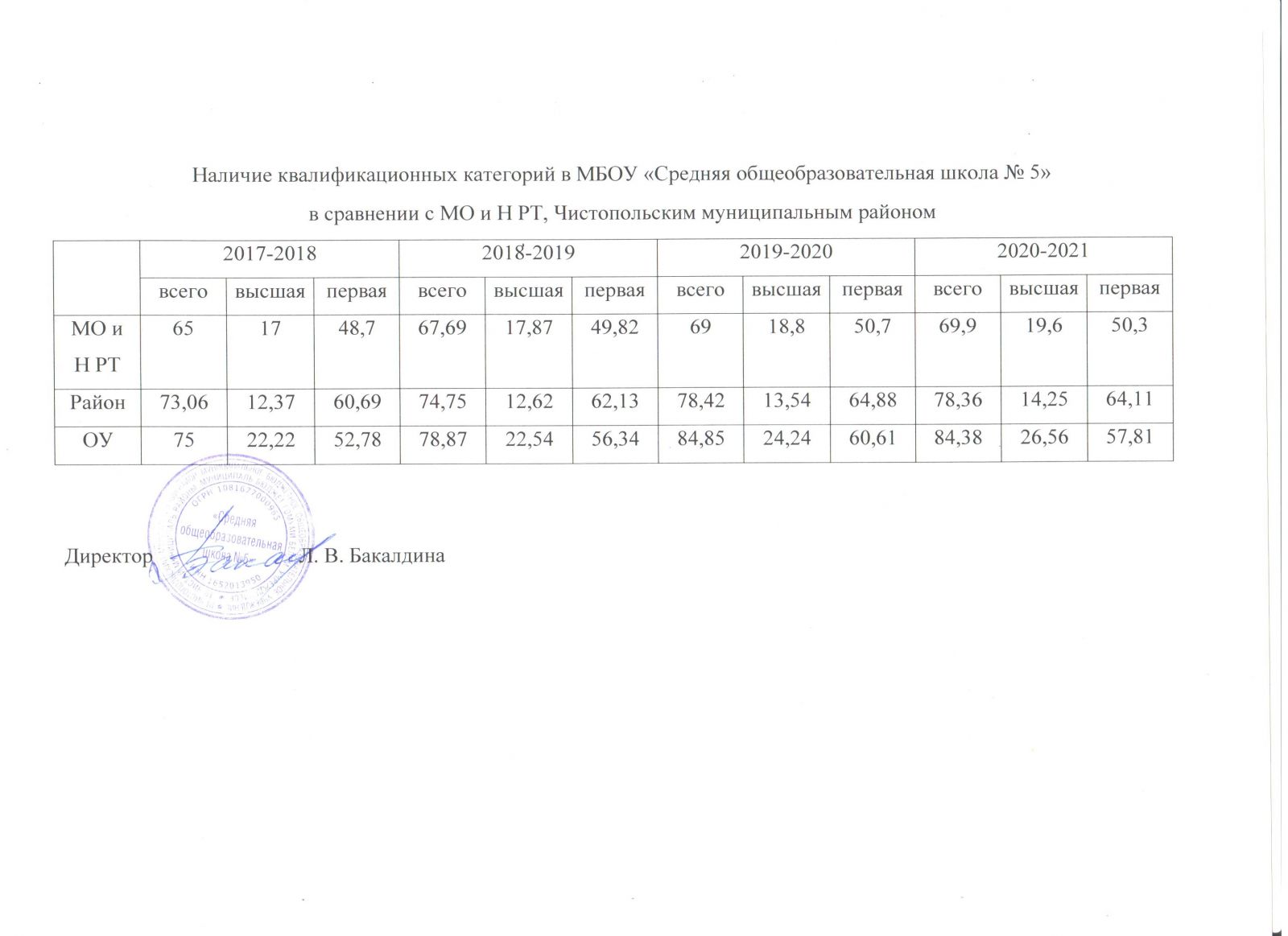 Наличие квалификационных категорий в сравнении с МО и НРТ, в Чистопольском районе