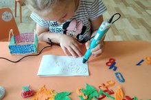 Воспитанники познакомились новым типом ручек - 3D ручкой, техологией его работой./Тәрбияләнүчеләр 3D ручка, аның торышы һәм эш тәртибе белән таныштылар.