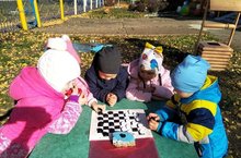 Игры в шашки на прогулке./ Балалар урамда да шашка уенын бик теләп уйныйлар.