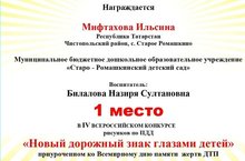Наша воспитанница участвовала в конкурсе "Новый дорожный знак глазами детей", приуроченном по Всемирному дню памяти жертв ДТП./ Безнең тәрбияләнүчебез Бөтендөнья юл-транспорт һәлакәтләре корбаннарын искә алу көненә багышланган "Балалар күзлегеннән яңа юл билгесе" конкурсында катнашты.