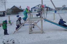 Кыш бабай аз яудырса да карны,Абый - апалар безгә бергәләпЯсап куйдылар тауны.Эй, тауыбыз, тауыбыз, рәхәтләнеп шуабыз! -