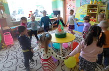 Детский сад ребят встречает,Свои двери открывает!Здравствуйте, детишки,Девчонки и мальчишки!Балалар бакчасы балаларны каршы ала,Ишекләрен ача!Исәнмесез, балалар,Кызлар һәм малайлар! -
