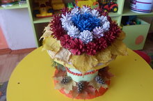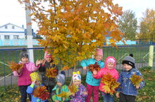 По тропинке в листопад, на прогулку вышли,И букеты у ребят, вот какие вышли!Листики разные, яркие букеты,Долго будем вспоминать, этот листопад! -