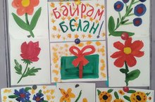 Сегодня в этот праздничный день воспитанники нарисовали цветы и подарили сотрудникам. / Тәрбиячеләр көне уңаеннан, балалар рәсемдә чәчәкләр ясап, бүләк итеп, апаларын котладылар.