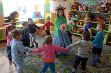 Әниләргә бәйрәм бүләге итеп балалар кәгазьгә үзләренеӊ кулларын төшерделәр, чәчәкләр белән бизәп бүләк ясадылар. Бәйрәмгэ 8 Март хатын кызлар көне белән котлау сүзләре өйрәнделәр.