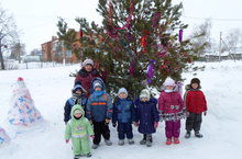 Бүген Яӊа ел ялларыннан соӊ авыл клубына чыршы янына экскурсиянә бардык. Чыршыныӊ матурлыгын, ылысларын, эленгән уенчыкларын карадык. Чыршыга багышлап җыр җырладык.