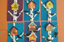 Аппликация на тему "Скворечники скворцам". / "Сыерчык оясы"темасына кисеп ябыштыру. -