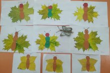 Ручной труд из природных материалов./ Кул эше буенча балалар көзге яфраклардан күбәләкләр ясадылар.