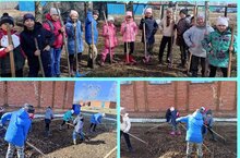 Приходи зелёный май!Мәктәп территориясен чистарту буенча өмә үткәрелде.