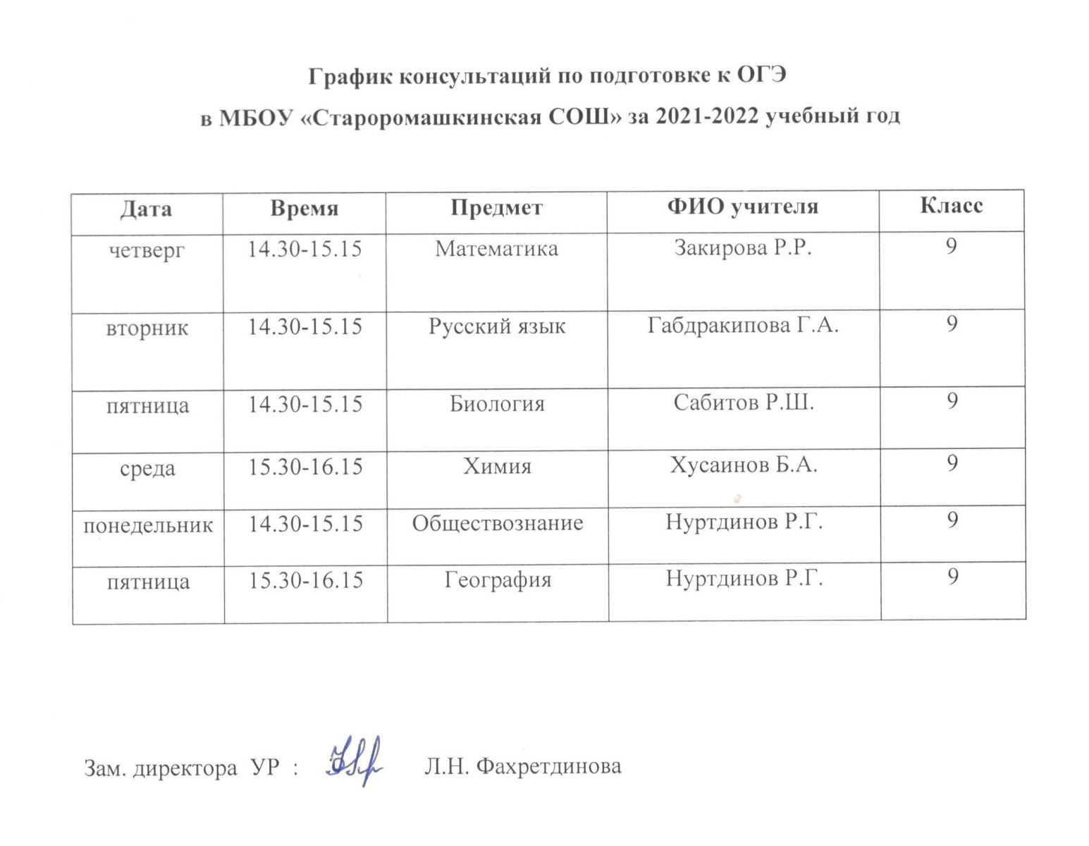 График консультаций по подготовке к ОГЭ/ТДИга әзерлек буенча консультацияләр графигы