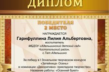 За победу в I Зональном творческом конкурсе "Затейница -Осень"