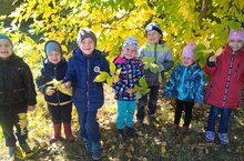 Балаларның көз турында алган белемнәрен ныгыту максатында, без табигать кочагында сәяхәттә еш булабыз. Балалар белән яфраклар җыеп киптерәбез. Гөмбәләр турында белемнәрне, агачлар һәм аларның яфракларын танып белү максатында уеннар уйныйбыз.
