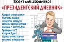 Каждый ученик может получить в конце четвертой четверти именной Президентский дневник с автографом Президента РТ, который будет торжественно вручен им лично в Казанском Кремле (Проект для школьников "Президентский дневник" )
