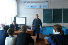 В начальных классах уроки провели классные руководители, а в старших классах урок с презентацией провел учитель физики Рахматуллин Ш.Т.