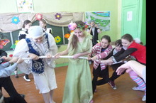 Бәйрәмдә балалар "Кышбикә" һәм "Язгөл" нең мәкальләрен әйтү буенча ярыштылар, "Кояш"ны чакырып уеннар уйнадылар.