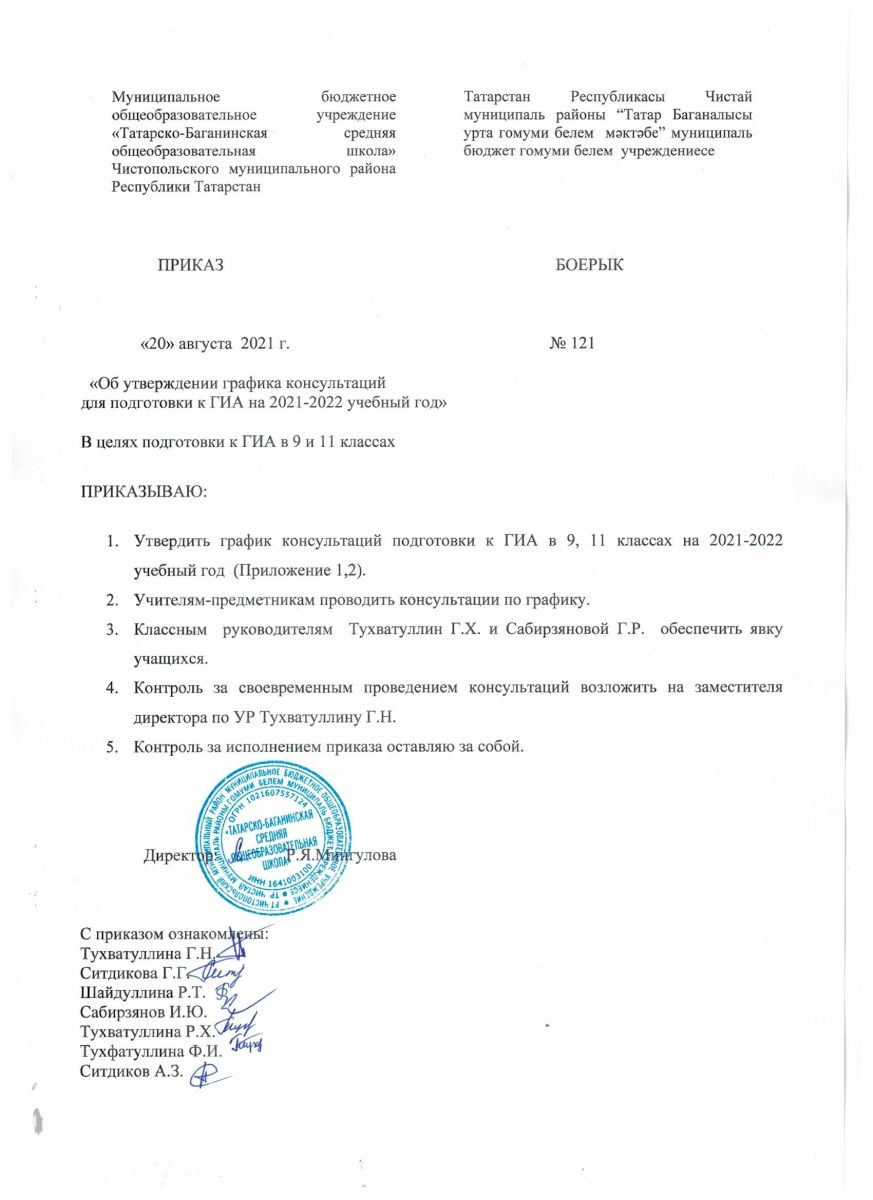 Приказ "О проведении консультаций по подготовке к олимпиадам 2021-2022 учебного года"