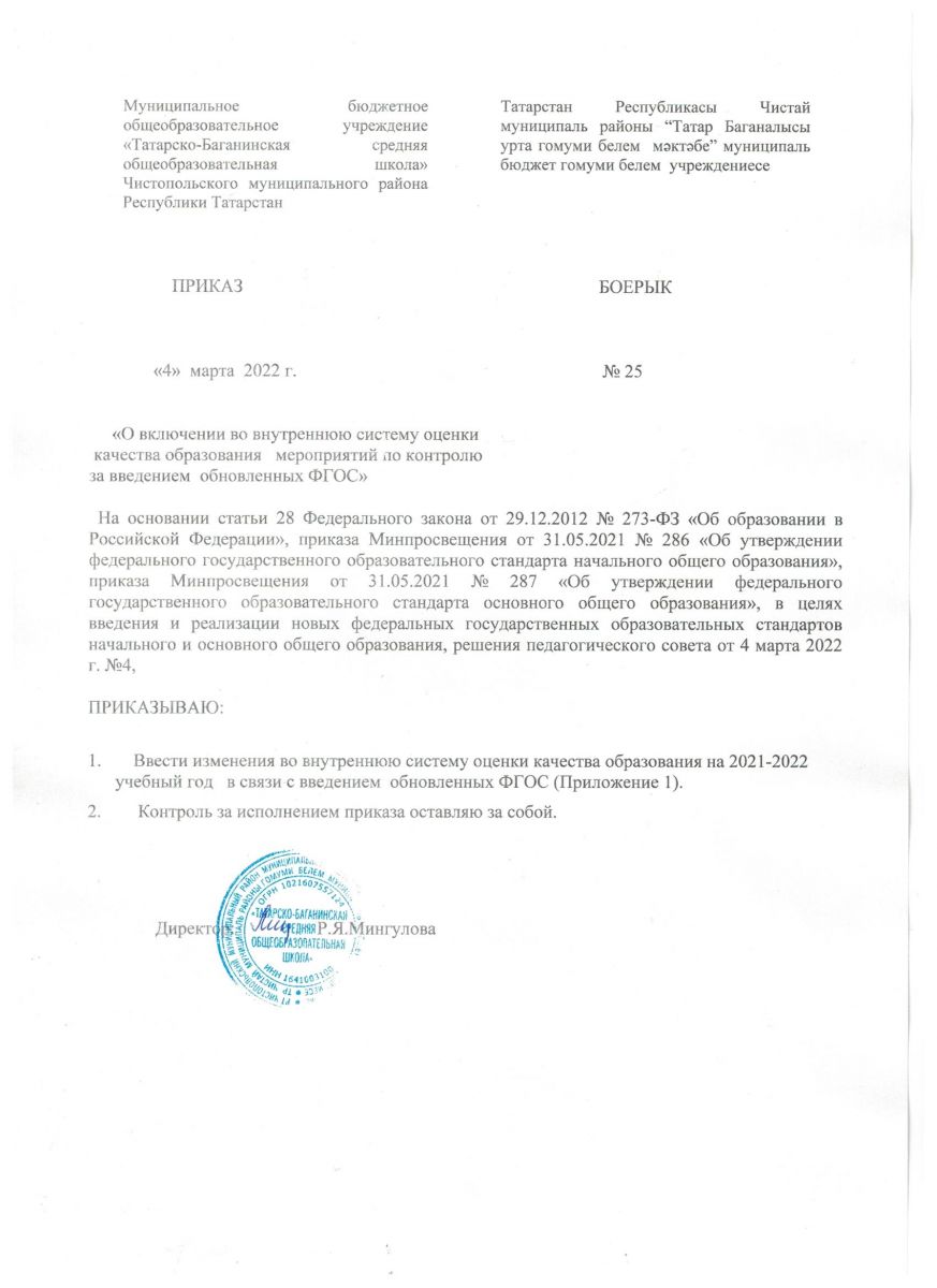 Муниципальное бюджетное общеобразовательное учреждение «Татарско-Баганинская средняя общеобразовательная школа» Чистопольского муниципального района Республики Татарстан/ Татарстан Республикасы Чистай муниципаль районы "Татар Баганалысы урта гомуми белем мәктәбе" муниципаль бюджет гомуми белем учреждениесе
