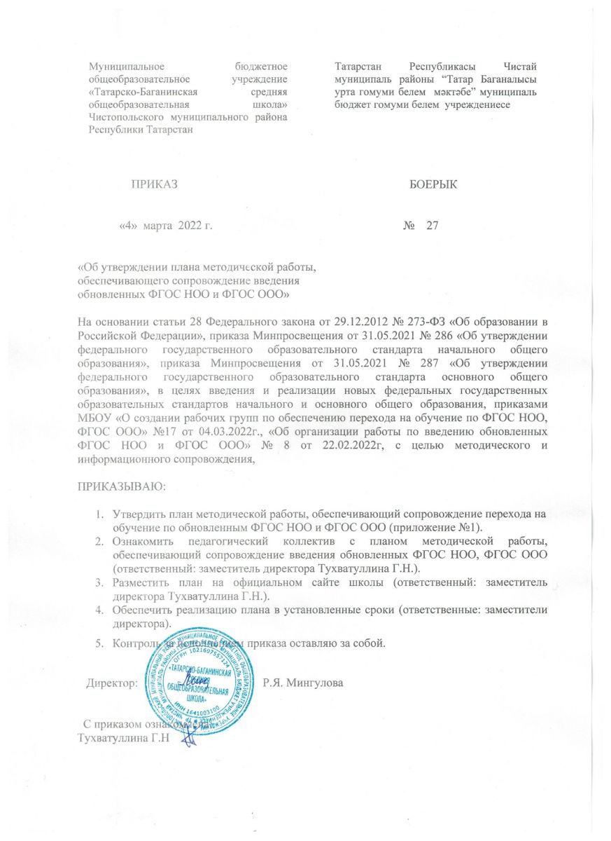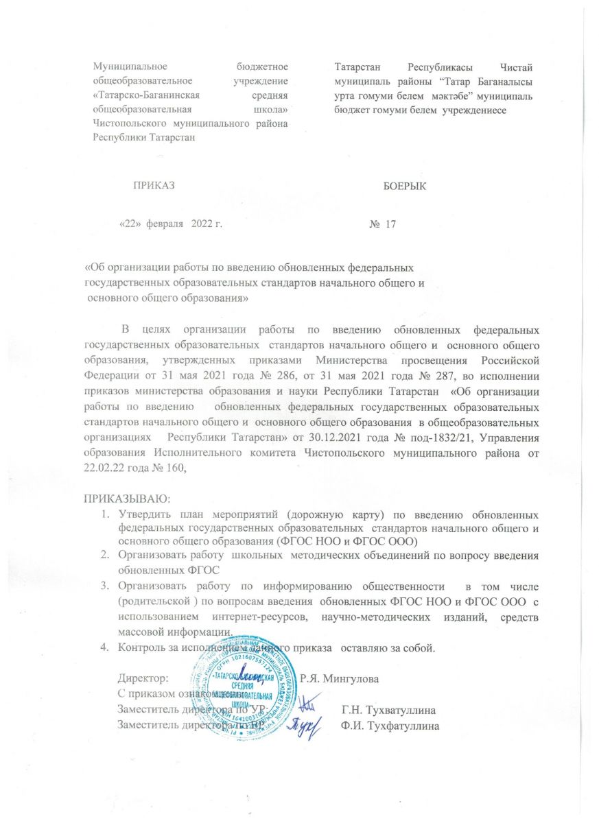 Приказ "Об организации работы по введению обновленных ФГОС НОО и ФГОС ООО"