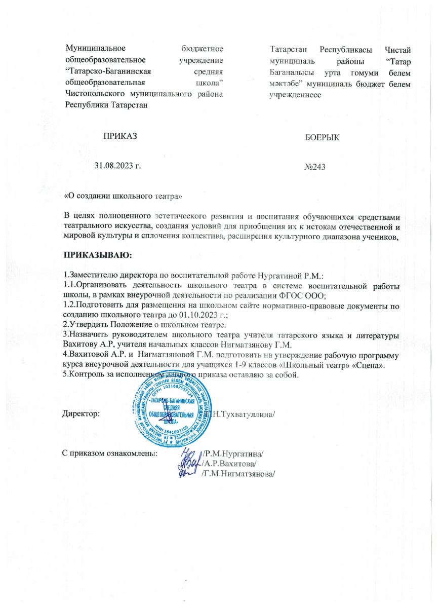 Муниципальное бюджетное общеобразовательное учреждение «Татарско-Баганинская средняя общеобразовательная школа» Чистопольского муниципального района Республики Татарстан/ Татарстан Республикасы Чистай муниципаль районы "Татар Баганалысы урта гомуми белем мәктәбе" муниципаль бюджет гомуми белем учреждениесе