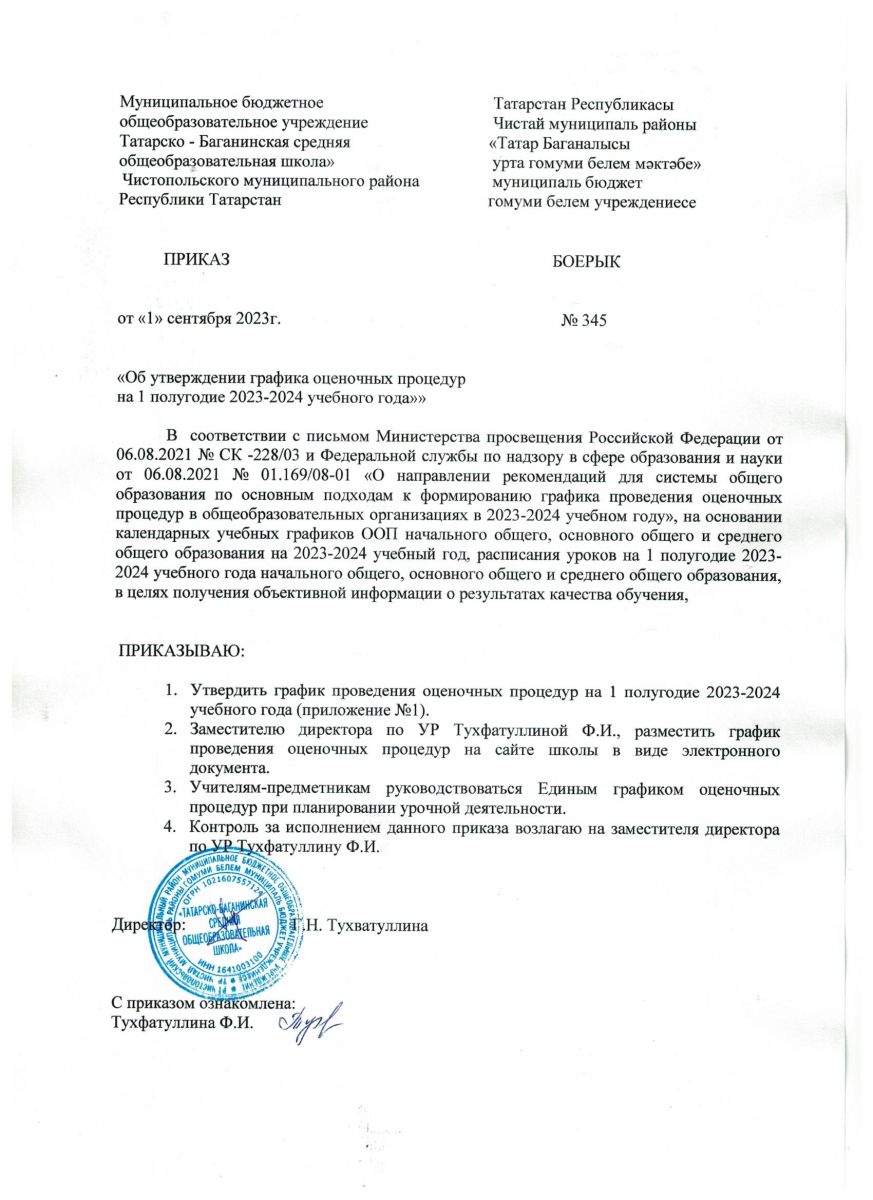 Приказ об утверждении графика оценочных процедур на 1 полугодие 2023-2024 учебного года