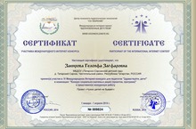 Закирова Гелсифа Загфаровна приняла участие в |V Международном конкурсе для педагогов "Здравствуйте, дети!" в номинации: "Конкурс социально-значимых акций" и представила конкурсную работу проект "Чужих детей не бывает".