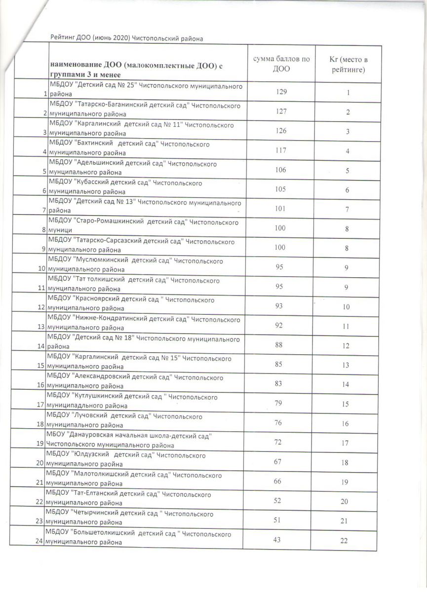 Рейтинг ДОО/ Балалар бакчаларынгың рейтины