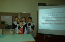 17 октября в МБОУ «Татарско-Сарсазская СОШ» школьным библиотекарем Фатхуллиной Г.И. была проведена Презентация книги Л.Н.Щенниковой «Прикоснись сердцем к подвигу» для учащихся 1-11 классов. Ученики V и VI классов познакомили учащихся с автором книги, говорили о подвигах наших земляков Виктора Маринина, Александра Кулясова, Павла Миронова. Рассказали о 900- дневной ленинградской блокаде, читали письма солдат. Все эти выступления сопровождались Презентацией, видиоставками, стихами поэтов В. Харитонова, Б. Окуджавы, М. Джалиля, Н. Флерова. Мы надеемся, что книга Л.Н.Щенниковой «Прикоснись сердцем к подвигу» как в школе, так и среди населения деревни найдет своего читателя, не оставит равнодушным того, кто захочет её раскрыть, заставит почувствовать дыхание далёкого, героического времени, прикоснуться к подвигу народа.
