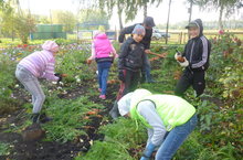 Сентябрь месяц урожая. Нынче на участке нашей школы богатый урожай свеклы и моркови. Учителя и учащиеся школы с большой радостью собирали урожай.
