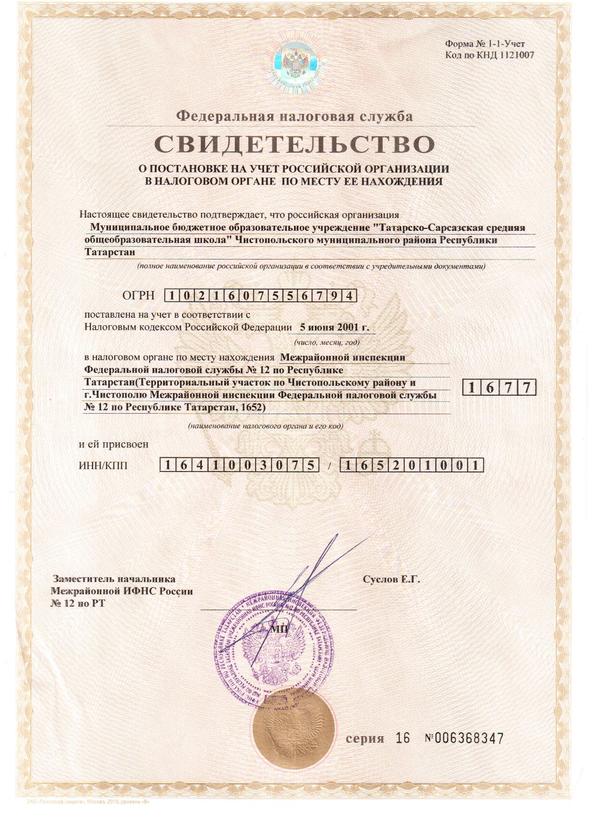 Cвидетельство о постановке на учет