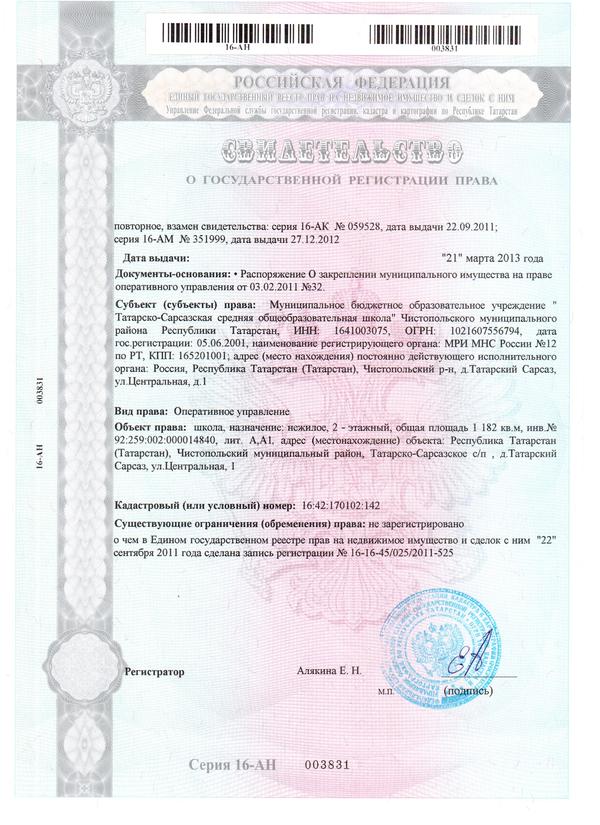 | Адрес: | 422970, Республика Татарстан, Чистопольский район, д. Татарский Сарсаз, ул. Центральная, д. 1 |