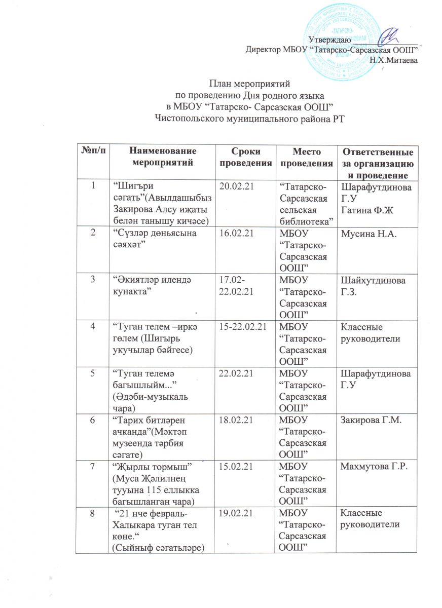 Муниципальное бюджетное общеобразовательное учреждение «Татарско-Сарсазская основная общеобразовательная школа» Чистопольского муниципального района Республики Татарстан/ Татарстан Республикасы " Татар Сарсазы төп гомуми белем бирү мәктәбе" муниципаль бюджет гомуми белем бирү учреждениесе