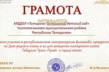 Участие в республиканском литературном флэшмобе,приуроченном ко дню родного языка и ко дню рождения татарского поэта Габдуллы Тукая "Тукай в сердце моем"