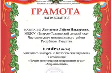 Участие в зональном конкурсе "Экологическая игротека" в номинации "Лучшая экологическая интерактивная игра"-"Мир животных".