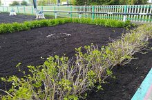 Территория җыештырылган,чәчәкләр утыртырга әзер.Пионнар,лилияләр,декоратив үсентеләр яшеллеккә күмелде. -