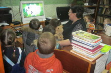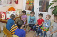 Без китапханәдә. Анда бик күп китаплар, журналлар. Китапханәче балаларны уку залы белән таныштырды, шулай ук анда үз-үзеңне ничек тотарга кирәклеген дә аңлатты. Ул ничек китапханәгә язылырга һәм өйгә китап алырга икәнен дә әйтте. Тәрбияче Фәния Ильдусовна язылды, балалар “365 алтын әкиятләр” исемле китап сайлап алдылар.